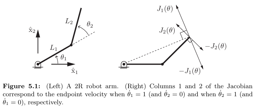 $$v_{\text{tip}} = J_1(\theta) \dot{\theta}_1 + J_2(\theta) \dot{\theta}_2$$